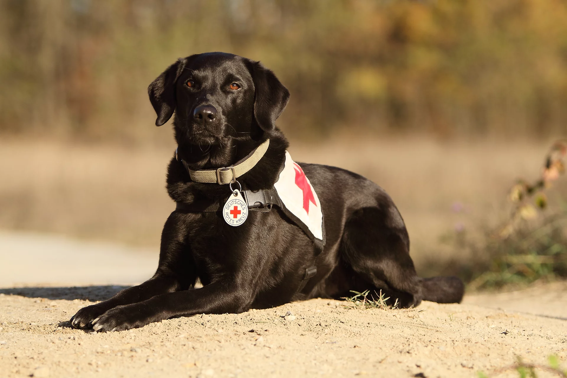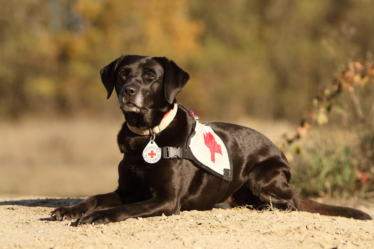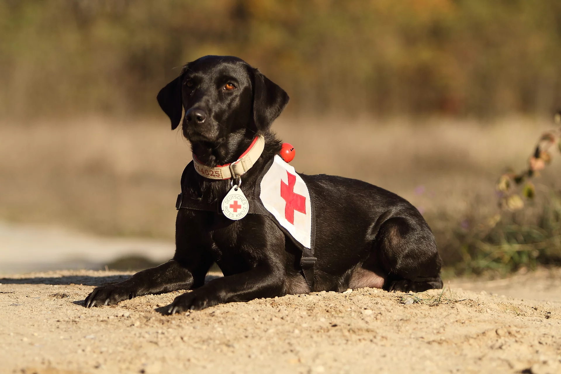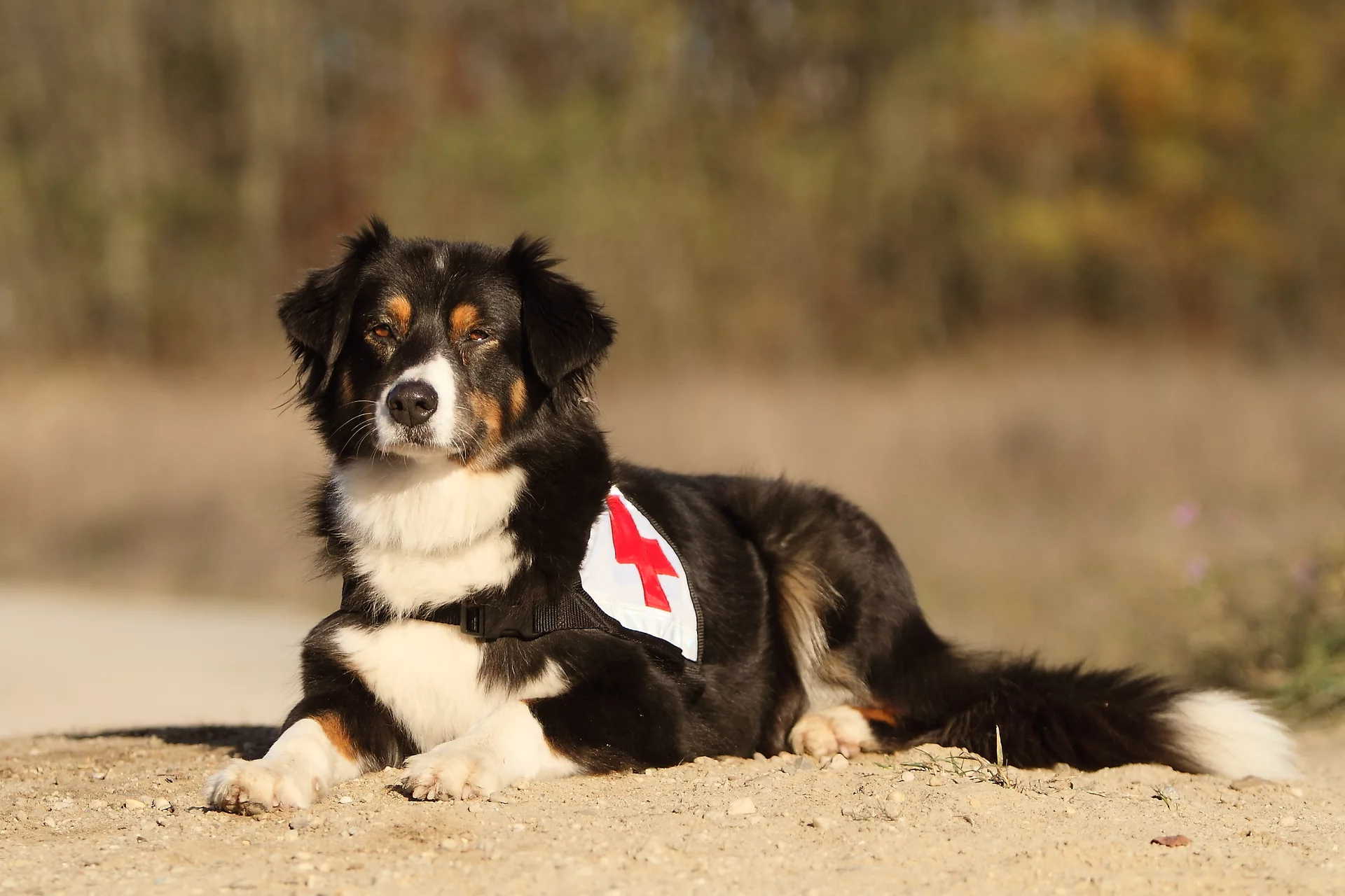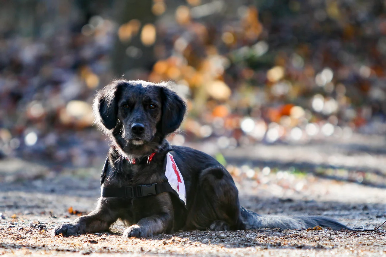 und im Einsatz befindlicher Rettungshund oder für einen Hund,