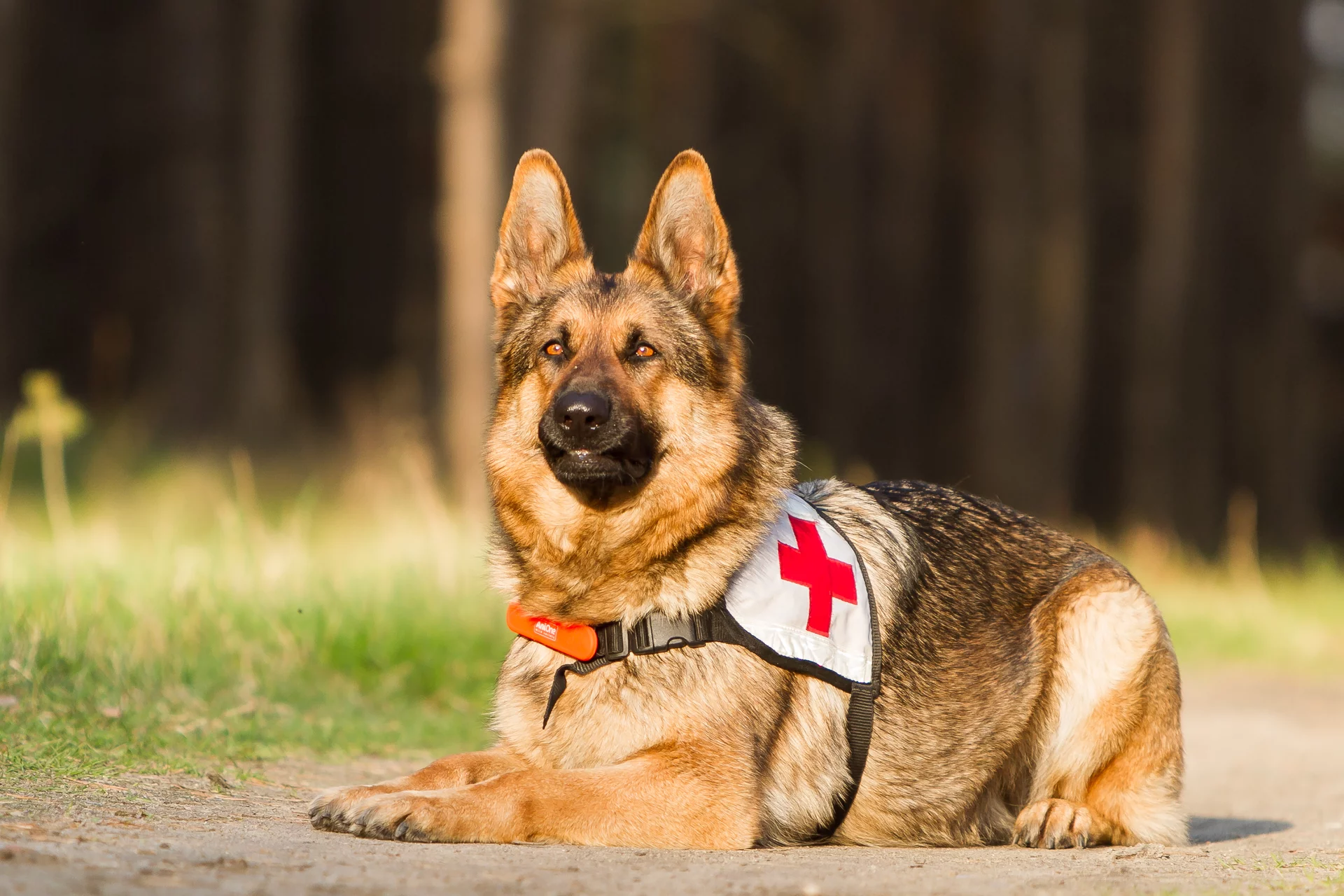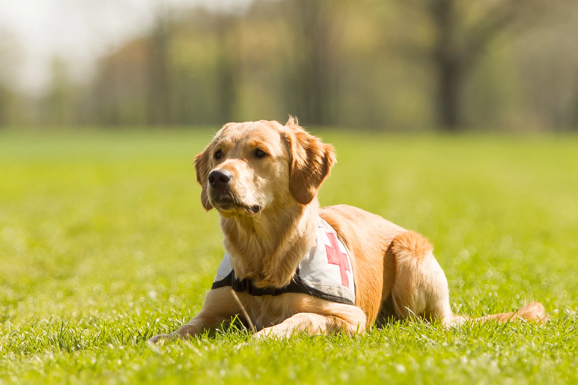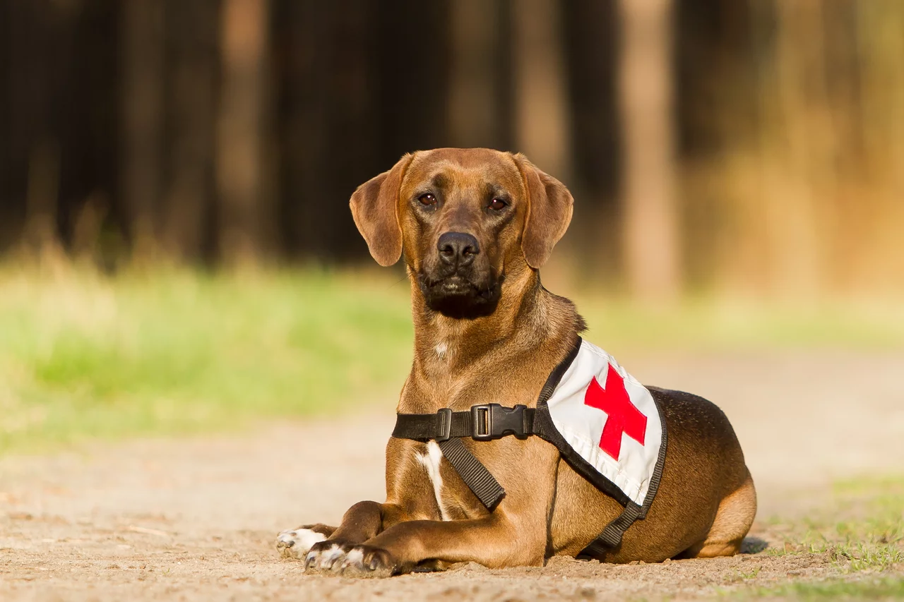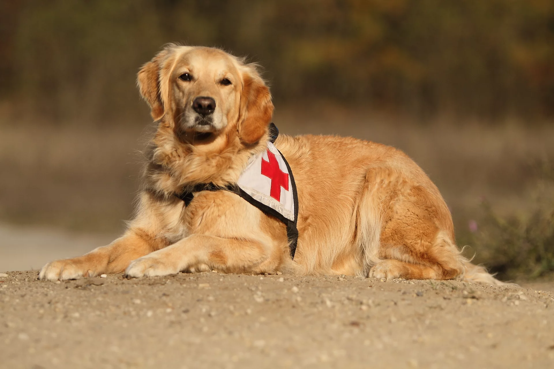 und im Einsatz befindlicher Rettungshund oder für einen Hund,