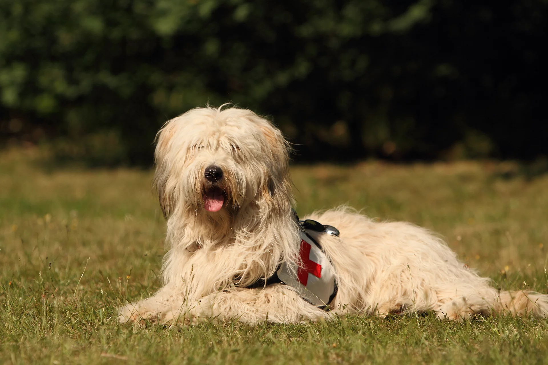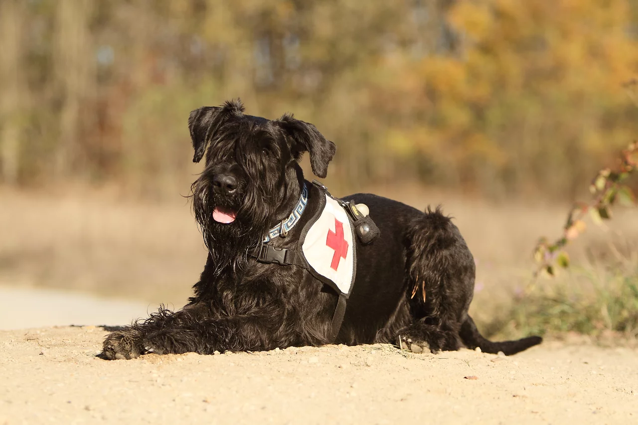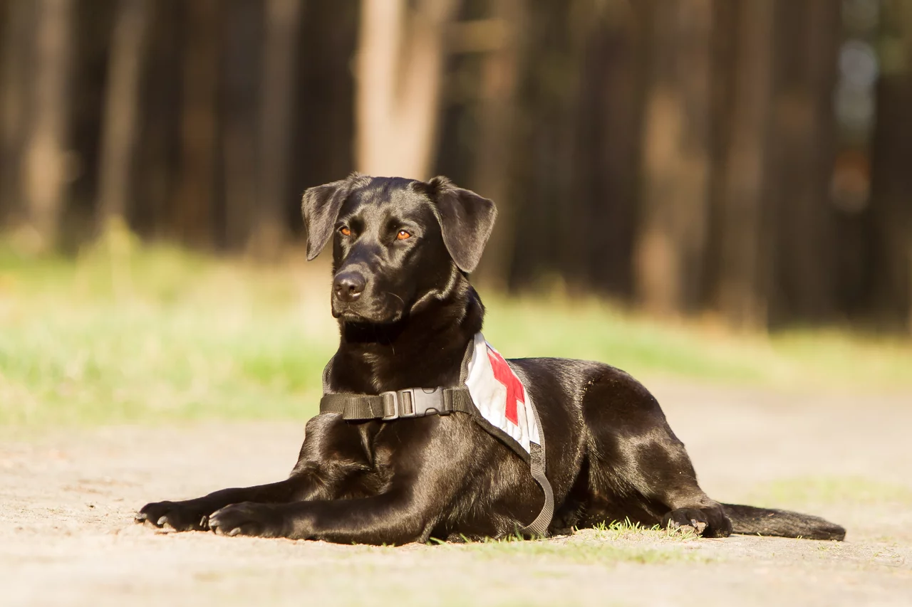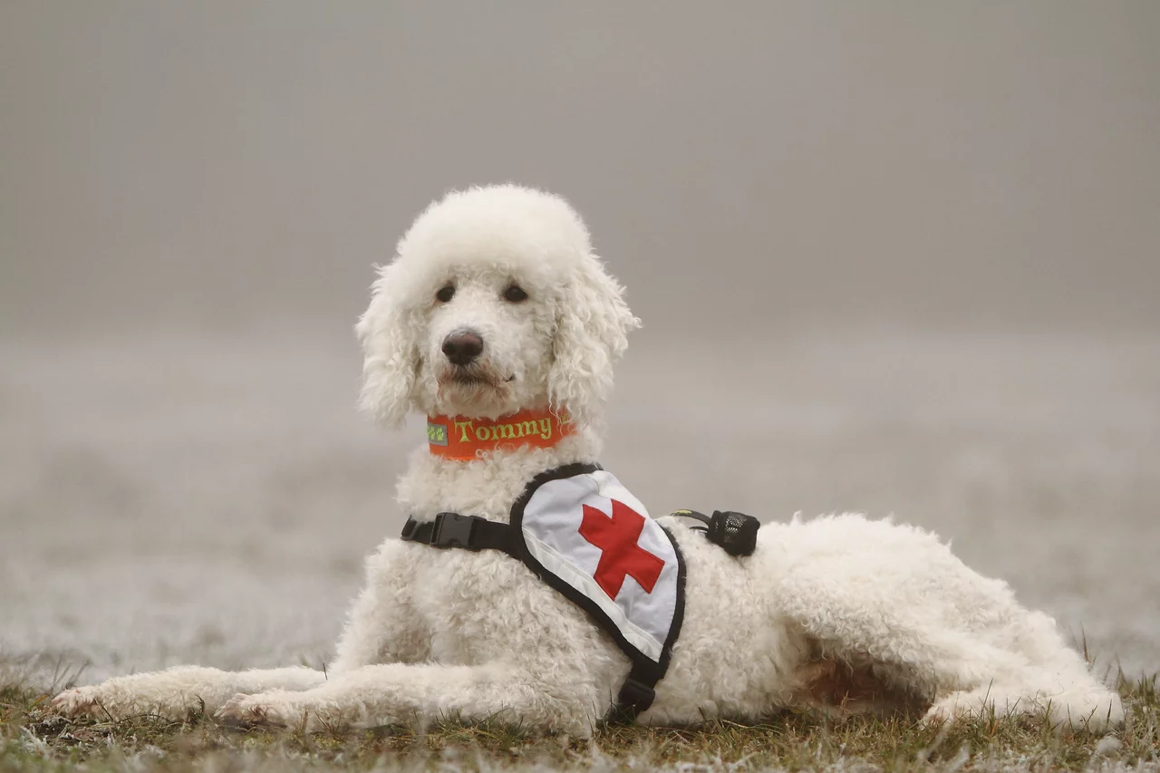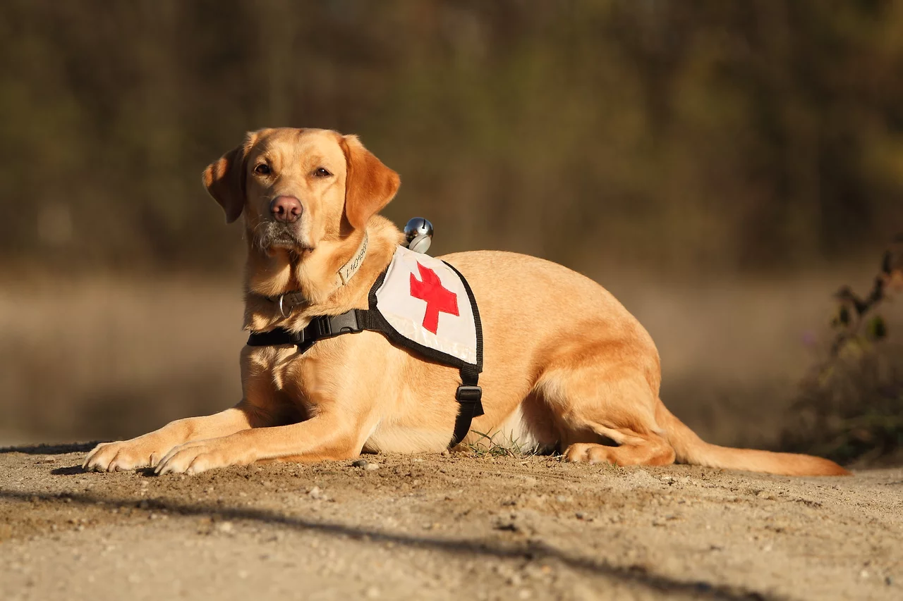 und im Einsatz befindlicher Rettungshund oder für einen Hund,